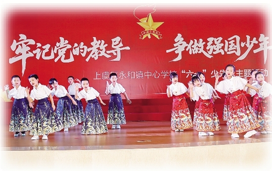 本报讯 (通讯员 叶凯 一兵) 5月30日上午,永和镇中心学校体育馆内彩旗飘飘、掌声阵阵。全校师生欢聚一堂,以“牢记党的教导 争做强国少年”为主题,共同庆祝充满欢乐和意义的“六一”儿童节。