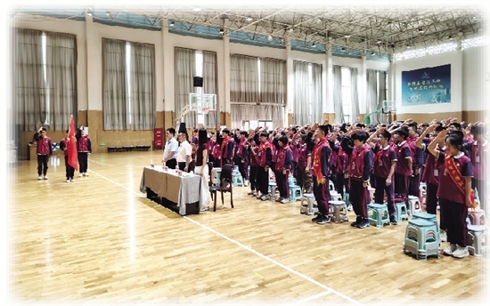 | 5月28日,实初教育集团百官中学八年级学子齐聚体育馆,完成从少年队员到共青团员的蜕变。 随后,共青团团旗庄严入场。学校团支部书记宣读新团员名单,被念到名字的学生步伐坚定地走上台前,接过团章、团员证,佩戴上闪亮的团徽。面向团旗,新团员们高举右拳庄严宣誓:“我志愿加入中国共产主义青年团……”字字千钧的誓言在体育馆内久久回荡,宣告着新一代青年奋斗征程的开启。 通讯员 田惠萍 昀雪 摄 |