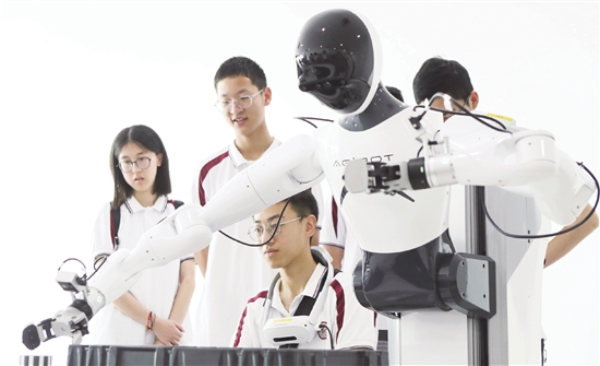 7月21日,春晖中学师生走进杭州湾具身智能创新中心,通过了解科技创新成果、观摩机器人“智能作业秀”,并与机器人对弈、操控机械臂抓取物品等沉浸式体验和互动实践,开启了一场触摸前沿科技的研学之旅,感受我区具身智能产业的独特魅力。