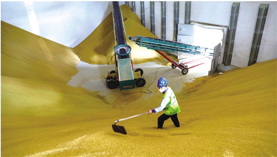 7月24日,上虞章镇中心粮库内,满载早稻的运输车往来穿梭,输送机“嗡嗡”作响,工作人员有序验粮、过磅,粮库里稻谷堆成“金山”。该粮库自7月7日开秤以来,早稻订单总量达13307吨,截至7月24日中午已收购11000吨,单日最高收购量1287吨。