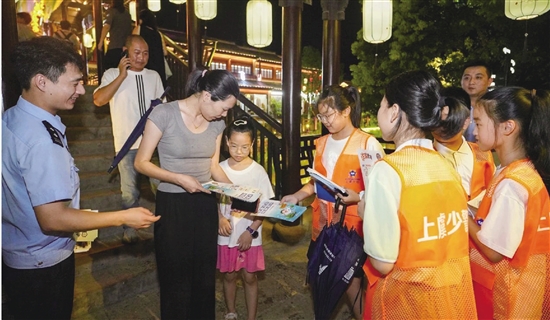 日前,曹娥派出所少警大队与“虞枫警·夏安行”宣防团联动,在中华孝德园、曹娥里·十三弄等地宣传讲解反诈技巧和防溺水要点。警民互动的温馨画面,让安全知识在夏夜烟火中悄然传递。