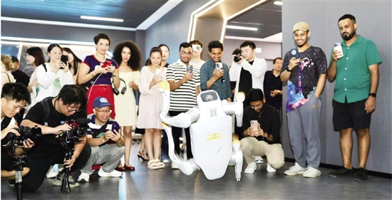 7月31日,第七届全球华人生活短视频大赛上虞站活动走进瓷源文化小镇与e游小镇。来自10余个国家的“城市推荐官”们在瓷源文化小镇体验拉坯、刻花等传统工艺;转场e游小镇,与具身智能机器人展开创意互动,用全球视角为上虞“山水人文+科技产业”的双面魅力代言。