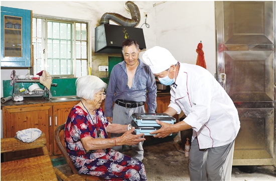 7月28日中午,谢塘镇晋生村党群服务中心的晚晴食堂里,工作人员端着冒热气的餐盒穿梭。这座由镇政府委托专业公司运营的食堂,每日为60位老人供餐,其中50份送上门。晋生村户籍人口2113人,村集体年收入超170万元,用“真金白银”托起养老服务:60—74岁老人自付5元/餐,85岁以上仅3元,政府补贴兜底。老人们接过饭盒笑着说:“热乎、管饱,比家里做饭还省心!”