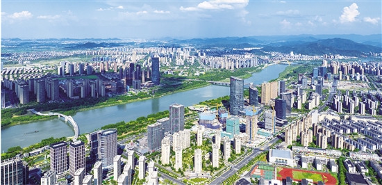 日前,航拍镜头下的上虞,曹娥江如玉带蜿蜒,大桥横跨两岸,高楼林立,玻璃幕墙折射蓝天白云,勾勒出“青春之城”的现代天际线。无人机视角下,山水与都市共生,繁华与生态交融,一幅活力四射的江南新图景跃然而出。 记者 魏新宇 摄