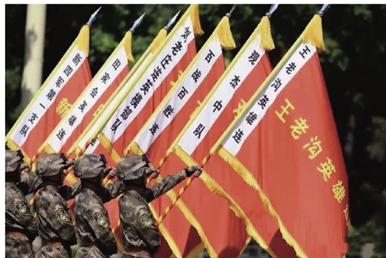 2015年9月3日,在纪念中国人民抗日战争暨世界反法西斯战争胜利70周年大阅兵上,观杰中队战旗走过天安门广场接受检阅。