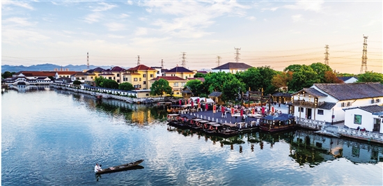“江南威尼斯”主题文旅综合体项目更是让村庄成为“网红打卡地”,古风画舫、露营休闲等项目吸引游客纷至沓来,月均打卡超万人次。村民阮大伯在景区周边支了一个小摊:“游客多了,生意越来越好,每月能多赚好几千元。”村里还联动农户构建“农旅产销链”,村民种植的蔬果通过景区销售,销路不愁。船上市集里,村民摆摊售卖特色农产品;水上观光带吸引游客体验水乡风情……多个共富联合体开拓多元增收渠道,新增就业岗位50余个,带动村民人均增收3000元。