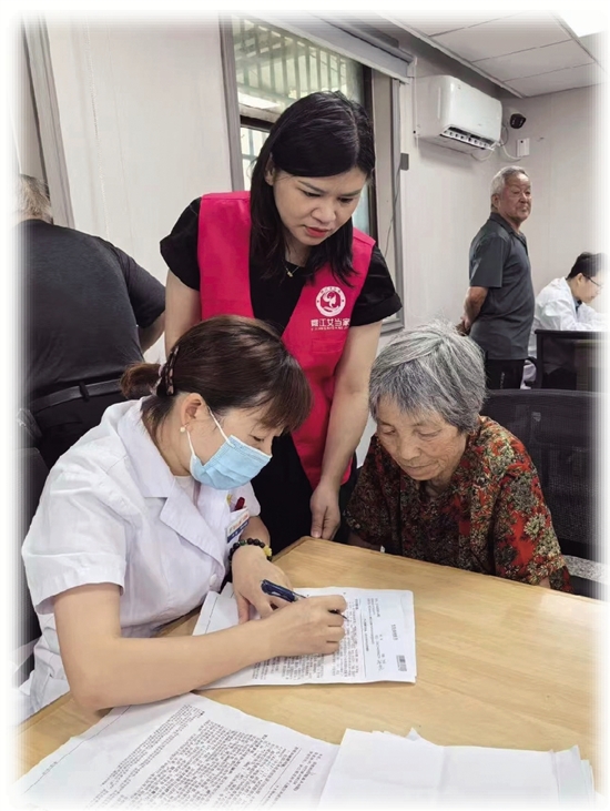 为实现健康管理“无缝衔接”,医院党委积极推动“医院—社区—家庭”三级健康服务网络建设。医院与崧厦街道社区卫生服务中心、41个村卫生室建立实时信息反馈机制,将居民体检解读建议、健康问题清单同步至基层医疗机构。党员医生还主动与社区责任医生、村医对接,指导他们开展常态化随访、慢性病用药指导等服务,将居民纳入对应健康管理档案。通过党委的统筹协调,形成了“医院诊断指导、社区跟踪管理、家庭积极配合”的良好格局,让健康管理覆盖居民生活的方方面面。