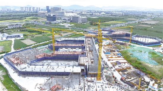 11月14日,上虞未来城竺可桢未来学校项目工地一派繁忙,工人有序作业,全力推进建设进度。