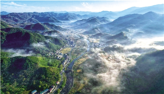 初冬时节,覆卮山迎来晨雾盛景。云雾似轻纱漫卷山谷,裹着黛色山峦与蜿蜒溪流,村落、田畴在朦胧间若隐若现,如泼墨山水晕染开来。航拍镜头下,层峦叠嶂与薄雾交织,尽显江南山野的空灵诗意,成为初冬时节的限定美学。