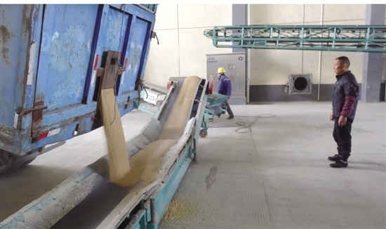 日前,虞北中心粮库秋粮入库迎来了小高潮,自11月初开始收储以来,每天有近500吨左右的秋粮晚稻谷入库。按照计划,该中心粮库将收储14500吨的晚稻谷订单。 通讯员 姜荣夫 摄