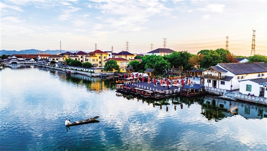 水域纵横、舟楫往来的新屯南村,地处上虞“西大门”,水域面积近3000亩,素有“江南威尼斯”的美誉,是集红色旅游、生态农业、工业园区于一体的共富示范村。