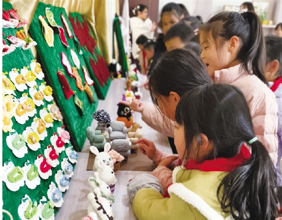 近日,汤浦镇中心小学组织社团开放日活动。活动中,“妙手生花”编织社团展出成员们创作的一件件作品,展示了娴熟的编织技巧和独具匠心的创意,吸引了众多师生驻足欣赏。