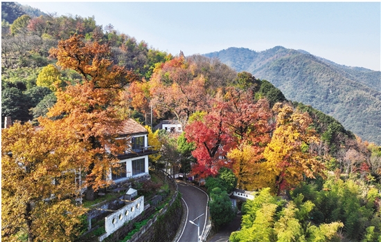 近日,岭南乡东澄村层林尽染,枫香与银杏交织成金色与绯红的海洋,古村白墙黛瓦掩映于斑斓山色中,梯田与石浪点缀其间,冬日暖阳下宛如童话秘境,吸引游客驻足捕捉限定冬色。
