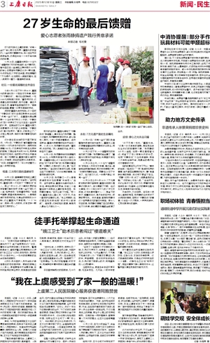 上虞日报 新闻·民生 00003 27岁生命的最后馈赠 2025-12-10 23850110 2 2025年12月10日 星期三