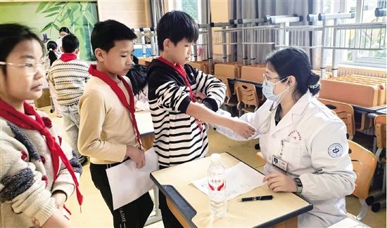 近日,长塘镇卫生院组建医疗团队走进杜亚泉小学,为全校学生开展全面健康体检,以专业医疗守护为孩子们的成长之路筑牢坚实健康防线。 通讯员 陈凌 摄