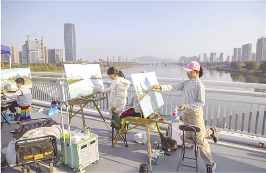 12月6日,曹娥江“一江两岸”景观带暖意融融。“小画家”们以江水为幕、城景为卷,用童真画笔定格这处集生态、休闲与文化于一体的城市滨水风光,将生态之美与人文韵味凝于笔尖,在写生实践中感受家乡的发展变迁。
