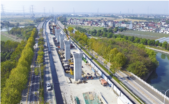 12月10日,位于道墟街道群贤东路的地铁2号线二期高架段与群贤路快速化改造工程同步推进,工人们正进行桥梁架设和盾构掘进,交通导改有序实施,助力绍兴三区融合。