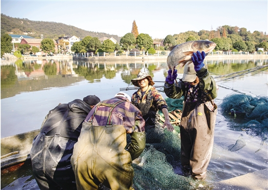 近日,百官街道路东村白马湖水系内,村民开展局部围捕,鱼跃人欢绘就丰收图景。该村60余亩优质鱼塘依托稳定优良水质,产出鱼虾广受市场青睐,既带动农户增收,每年更可为村集体经济增收10余万元,成为乡村特色发展亮眼路径。