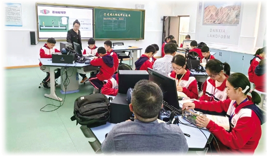 “我们结合学校‘悦课程’体系建设,确立总体设计思路,并从‘智慧教学空间+悦课程体系’、‘智慧教师发展+人工智能特色’、‘智慧网络升级+普惠同步课堂’建设三个方向发力,软硬匹配,力扶学生自主学习、创新素养等提升。”昨日,校长罗建峰如此定位。