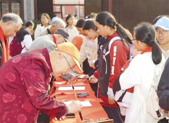 近日,丰惠学宫内书香满溢,学子们参与国学礼仪研习,通过揖让进退、朱砂启智等环节感悟文化精髓。活动现场,书画家挥毫泼墨,以“学业有成”“前程似锦”为主题创作书法作品赠予学子。