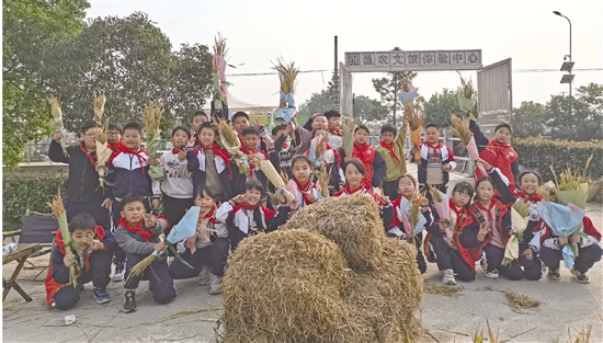 本报讯 (记者 沈嘉玲) 冬日的阳光洒在金色稻浪上,也映亮了孩子们求知的眼眸。近日,杭州湾未来城小学一至五年级的学生们走出教室,奔赴上虞祝温村“彩虹稻田小镇”,开启一场以“劳动实践、协作成长”为主题的沉浸式研学之旅。