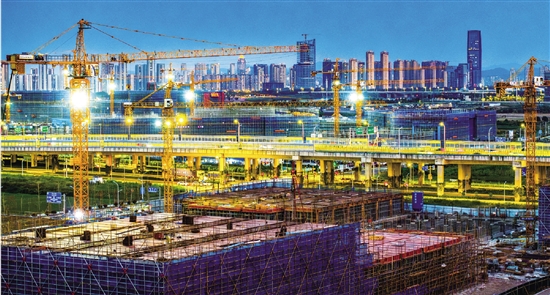 夜幕降临,曹娥江“一江两岸”各项目工地上灯火通明,工人们挑灯夜战抢工期,建设进度表不断被刷新,“一江两岸”的发展蓝图正以“一天一个样”的速度从图纸变为实景。 记者 朱胜钧 特约摄影师 莫李波 摄