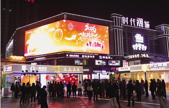 2025年12月31日晚,时代潮城“潮集BOX”化身跨年热力场,乐队Live燃爆全场,汉服舞者翩跹献艺。市民游客沉浸于音乐、光影与传统文化交织的狂欢中,共同迎接2026年的到来。