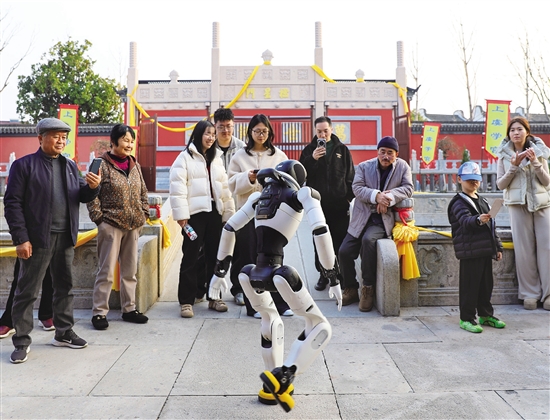 1月19日,在上虞学宫及丰惠镇党群服务中心,机器人挥毫写福、灵动起舞,电子狗随鼓点跃动,传统街巷瞬间充满未来感。据悉,区委组织部联合文旅部门创新“党建+科技+非遗”模式,组织党员志愿者引导游客参与汉服游园、非遗拓印等互动,千年文脉与智能科技交融,绘就党群共融的美好画卷。