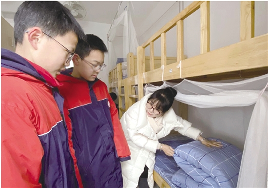 教师精心指导住宿生学习寝室事务,日渐养成良好生活习惯。