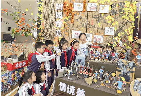 “我们依托‘百草园’‘百果园’‘百花园’三个劳动实践基地,构建起‘田园观察—文化解构—艺术创作’的育人路径,引导学生从田野中汲取灵感,在创作中升华情感,实现对自然美的感知、对生活美的热爱、对内心美的培养。”博文小学副校长赵瑾旻介绍。