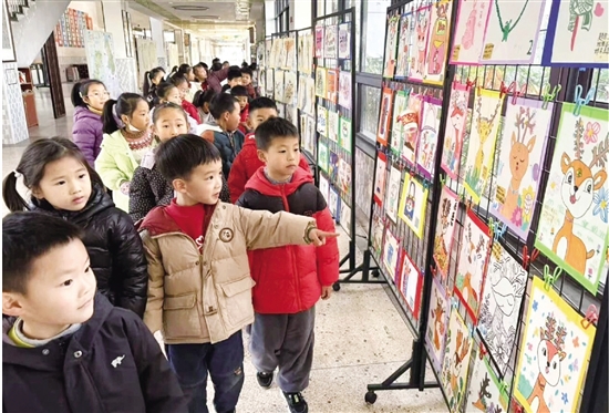 本报讯 (记者 陈婷) 近日,鹤小集团天香校区的美术展展架焕然一新,一场充满童趣与创意的小学生原创绘画手工作品展在校园内成功举办。本次展览荟萃了学生在绘画、手工、剪纸、创意设计等多个门类的美术佳作,孩子们用灵动的艺术语言挥洒想象,为雅致校园晕染出一抹鲜活的艺术亮色。一幅幅孩子们的“原生创作”整齐悬挂,成为冬日校园里一道亮丽的风景线。