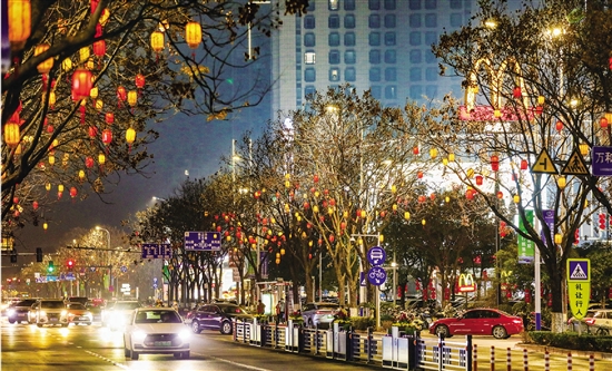 1月25日晚,上虞城区江扬路主干道两侧的灯笼与藤球灯首次试亮,4500余盏灯饰交相辉映,将冬夜装点得流光溢彩。 记者 魏新宇 摄