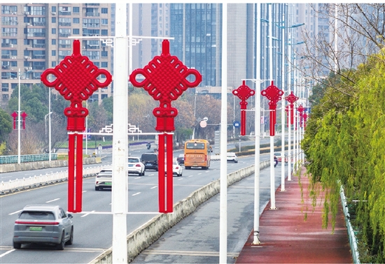 新春临近,年味渐浓。1月27日,三环路两侧的路灯杆上,大红中国结整齐悬挂,让过往市民提前感受春节的气氛和仪式感。