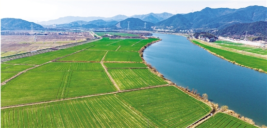 2月10日,曹娥江两岸绵延数公里的冬小麦绿意盎然,在冬日萧瑟景致中格外醒目。连片麦田长势稳健,青绿耀眼尽显生机,与江水相映成趣,勾勒出清新田园的生态景观画卷。 记者 朱胜钧 摄
