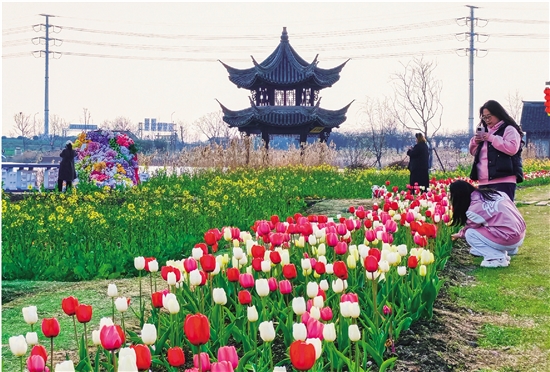 近日,杭州湾海上花田景区迎来春日盛景,油菜花、郁金香同步进入盛花期。金黄花海与缤纷郁金香相映成画,吸引市民游客前来踏青赏花,尽享滨海田园风光。