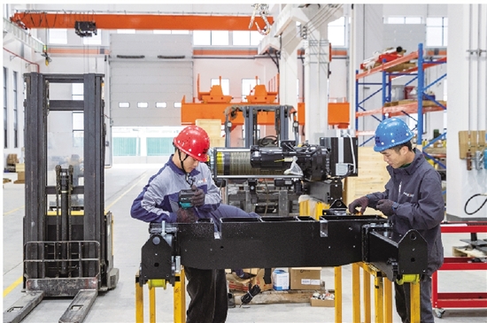 绍兴南特起重设备有限公司新厂房里,同样一派繁忙。作为东关街道首个5G工厂,精工、装配、电工等各条生产线有序运转。技术工人专注操作,智能设备精准作业,一台台起重设备完成组装、打包。企业负责人介绍,新厂房自去年10月投用以来,产能实现显著跃升。凭借技术创新和国际业务的积极开拓,订单已排至5月份,今年产值增长预计可达30%。