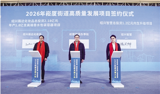 乡亲们的热情迅速转化为实打实的项目签约。现场,崧厦街道高质量发展项目签约暨“共富家园计划”正式启动:绍兴薇达总投资2.18亿元年产1.8亿支高端香水包装容器项目、绍兴智营总投资1.2亿元内生升级项目签约落地。印度籍企业家、绍兴薇达化妆品包装有限公司负责人迈克用略带口音的汉语动情地说:“崧厦很好,我愿意来这里投资!”