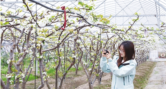 3月31日,谢塘镇晋生村的千亩梨园进入盛花期,洁白的梨花如雪覆地。游客漫步花间,拍照打卡,感受春日浪漫。该镇依托“谢晋故里”与“虞生优梨”品牌,推动农文旅融合,助力乡村振兴。 记者 魏新宇 摄