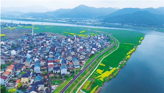 3月31日,曹娥江两岸,大片农田泛起新绿,金灿灿的油菜花点缀其间。江面波光粼粼,白墙黛瓦的村落掩映在绿意之中。春风拂过,花香阵阵,勾勒出一幅“春风又绿江南岸”的美丽田园画卷。