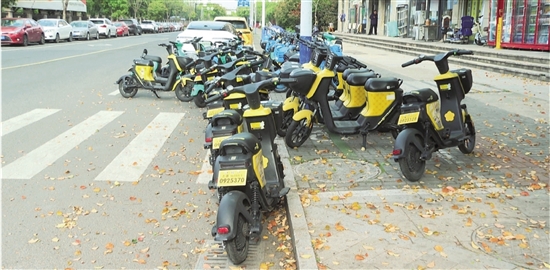 记者近日对整个城区共享电单车的停放状况进行了调查,发现共享电单车违停的现象非常普遍。